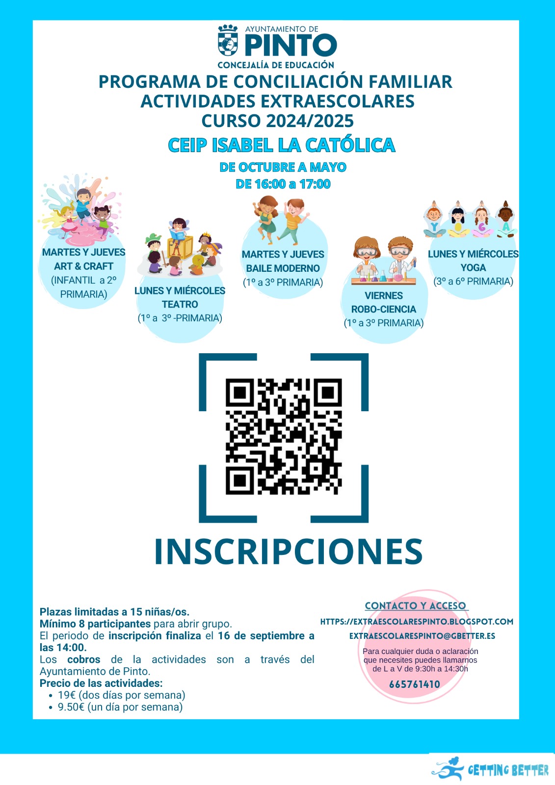 Podrán participar, previa inscripción, de lunes a viernes de 16.00 a 17.00 y de 17.00 a 18.00 en los patios de los colegios, Isabel la Católica y El Prado.
